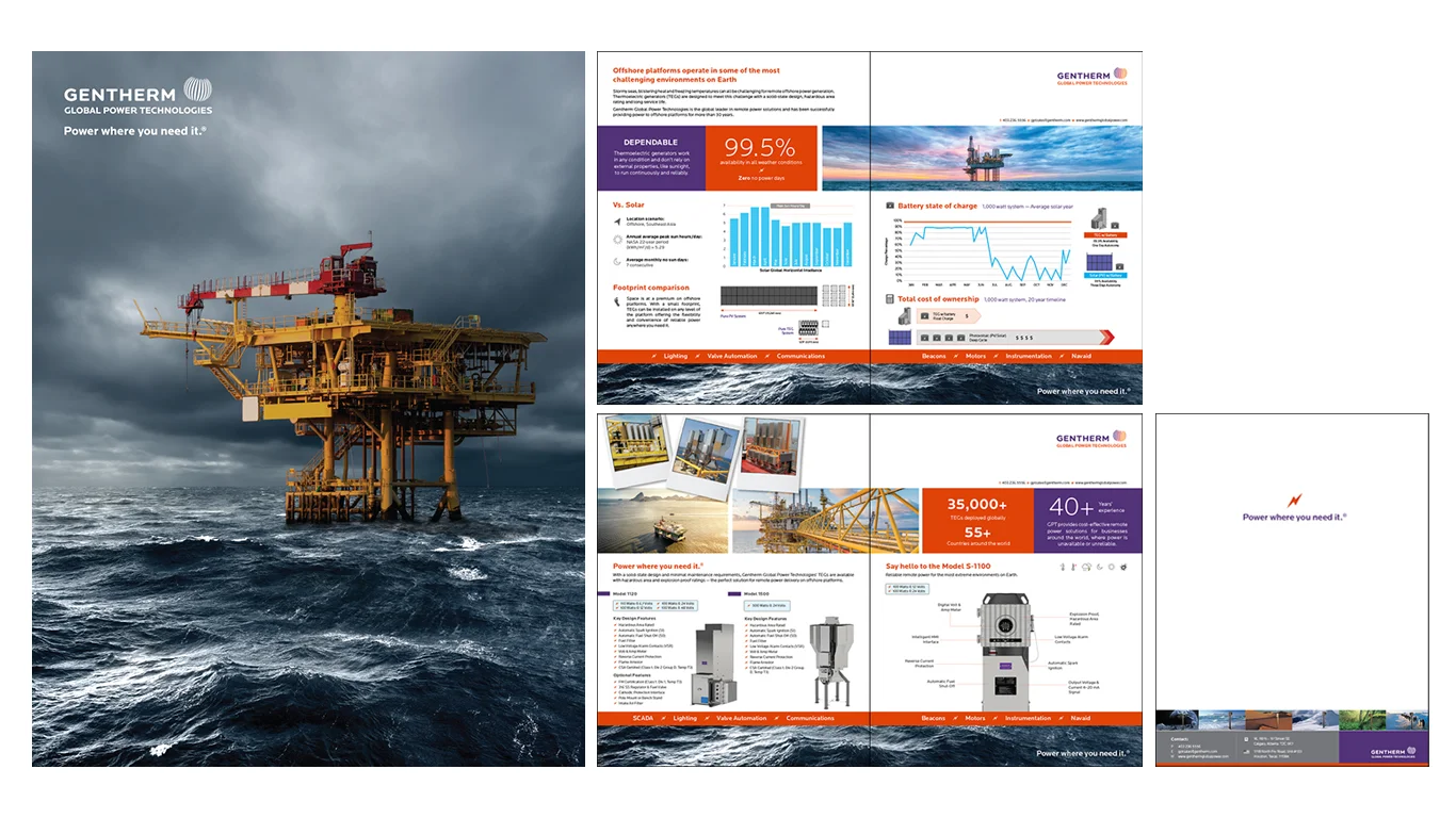 Design and development of M-Series Generator brochure targeting telecom industry. This project also included product design and development for the M-Series systems, working with engineering team at GPT.