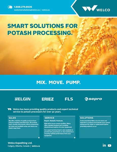 Design and development of 2025 PotashWorks full page advertisement for Welco Expediting Ltd.