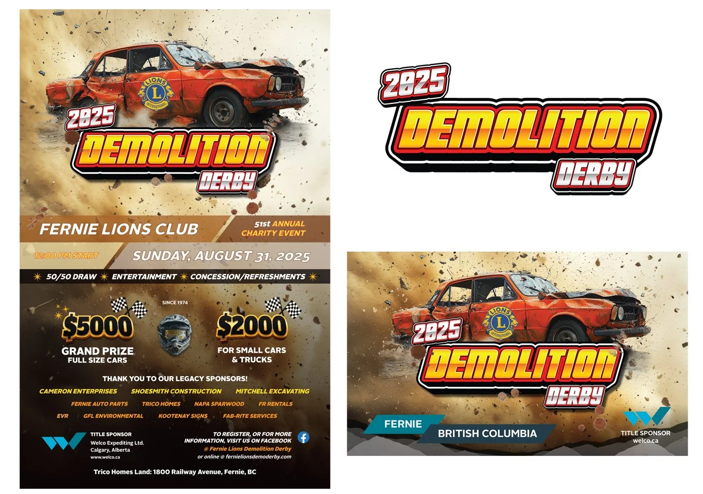 51st Annual Fernie Demolition Derby 2025 Designs – 11x17” Poster / 3x5” Decal / Logo Branding