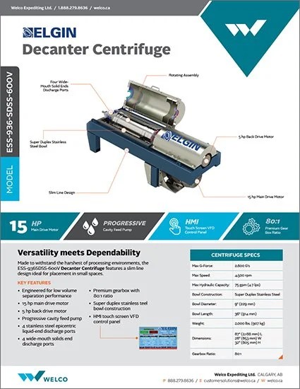 Design and development of Elgin Decanter Centrifuge sell sheet for Welco Expediting Ltd.